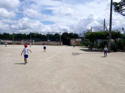 今週から神川スポーツフェスティバルの練習と並行してハンドベースボールも行っています。普段休み時間に触っている大きなボールとは違って、小さな野球ボールに苦戦する姿が見られました。1時間目はポールに乗っているボールを手で打つ練習をしたり、キャッチボールをしてボールの大きさになれる練習をしました。