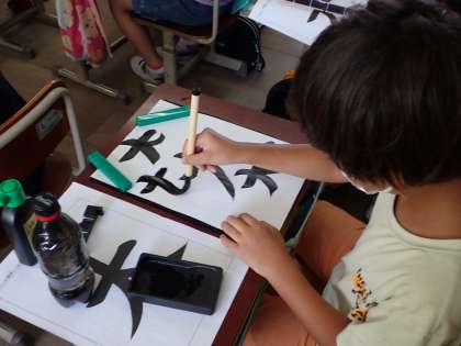 「大」の漢字には2か所はらう場所があり、だんだん力を抜くはらい方、逆に力を入れて書くはらい方を何度も練習しながら頑張りました。