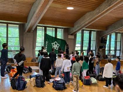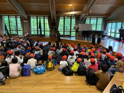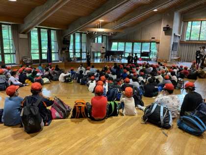 元気いっぱい挨拶をして、花背山の家での生活のお話を聞きました。