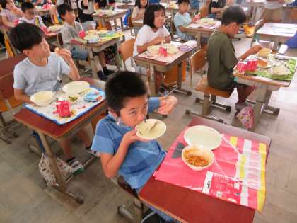 2学期も給食をおいしくいただいています。