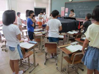 音楽の授業では「しずかにねむれ」の曲に合わせて、体で和音を表現しました。