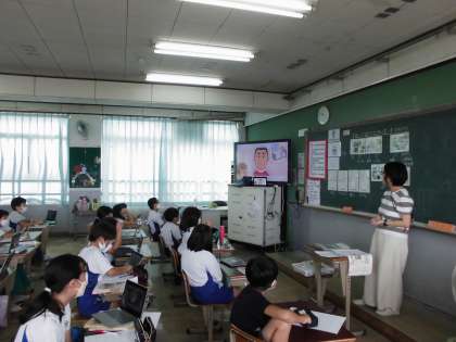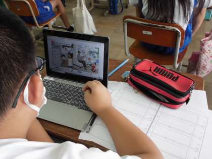 2学期から外国語科の学習でもGIGA端末を使用しています。