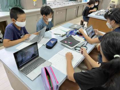 GIGA端末や虫眼鏡を使っておしべとめしべのつくりの違いなどを学習しました。