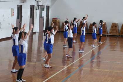 神川スポーツフェスティバルで踊る全校ダンスを頑張っています。
