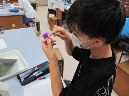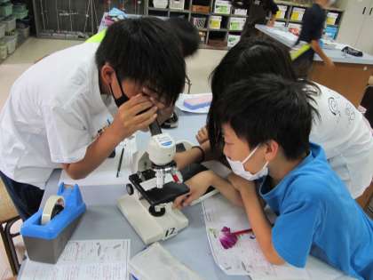 顕微鏡で花粉の観察をしたり、つぼみのときと開いたときの違いを見たりしました。