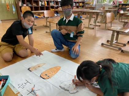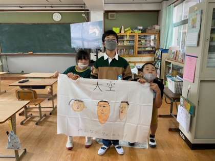 スポーツフェスティバルに向けて6年生で大空学級の旗を作りました。後は、このまわりにみんなの手形を押してもらう予定です。