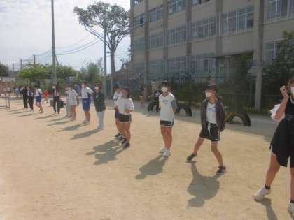 スポーツフェスティバルに向けて、6年生のダンス係を中心に全校ダンスの練習をしています。1年生から6年生まで、休み時間にキラキラ笑顔で頑張っています。