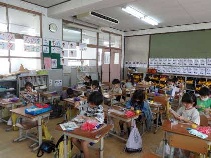 いよいよスポーツフェスティバルが来週に迫ってきました!少しづつ本番を意識して,緊張感を持ちながら練習に一生懸命取り組んでいます。今日は,ダンスで使うポンポンを作りました。