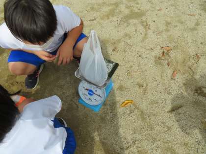 砂を使って1kgの重さにし、持ってみると、思ったより重いなあと感じていました。
