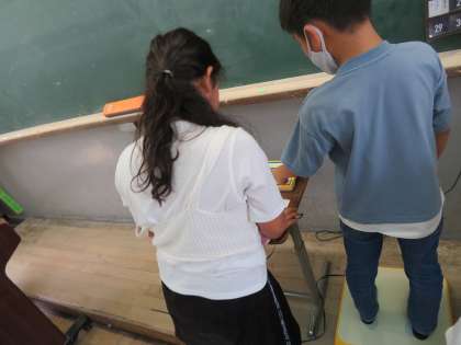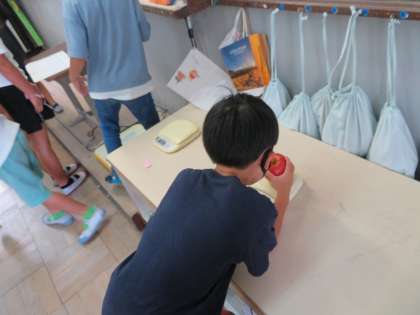 「思ったよりも軽かった!」「思ったよりも重かった!」と重さを量ることを楽しんでいました。