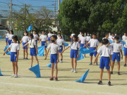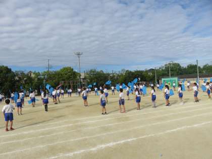 神川スポーツフェスティバルに向けての練習も残すところあと少しになりました。100m走や玉入れ、そして集団演技も全部を通して練習してみました。