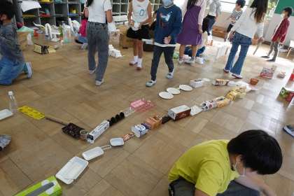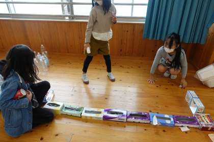 積み上げたり、並べたり、転がしたり、みんなで楽しんでいます。