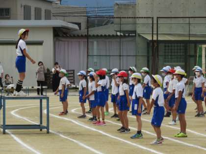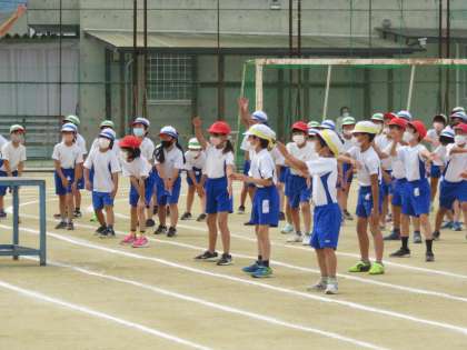 全校ダンスでは、ダンス係の6年生を見ながら、