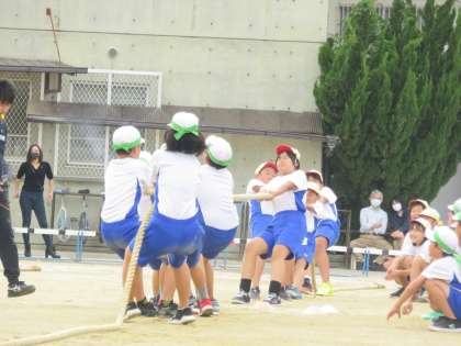 試合を観戦している組も他の色を応援する声が聞こえてきました。最後の決勝まで子どもたちの一生懸命な姿をみることができました。