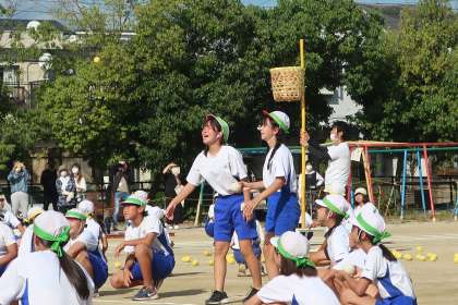 「オッス、オラ悟空!今日は運動場に散らばったドラゴンボールをかき集め、かごに入れっぞ!勝つのはどの組だ。オラに声援を分けてくれ〜!」