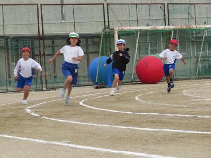 6年生はゴールで待ってくれています。