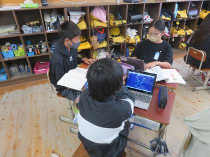 国語の学習では、「日本文化を発信しよう」という学習をしています。「マンガって日本の文化?」「温泉もかな。」など、日本にはどのような文化があるのか、班の友だちと話し合いながら、発信するための材料を集めました。