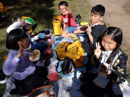 それぞれおうちの人に作ってもらったお弁当を味わって食べていました。