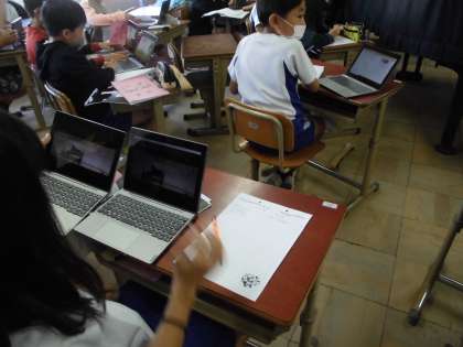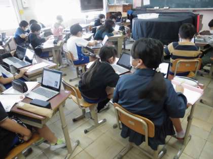 GIGA端末を使って代表作などを調べ、知っている歌もあり驚いていました。