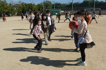 張り切って運動場に出ています。