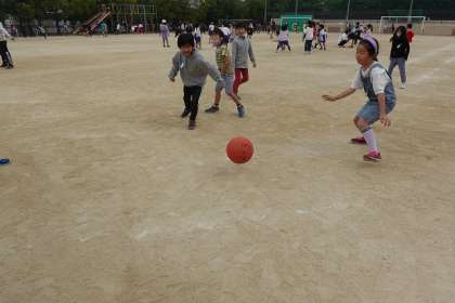 2年生はボール遊びにはまっています。