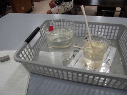 今回は、コーヒーシュガーと食塩を溶かして、その様子を観察しました。