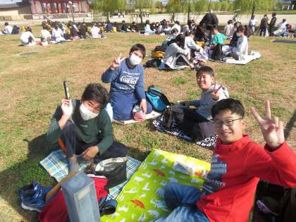 お腹が減ったので昼食です。クラスごとにまとまって「いただきます!」