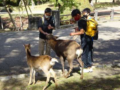 「見て、俺の鹿やで!」「先生、写真撮って!」「ふわふわで可愛い。」