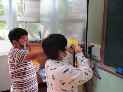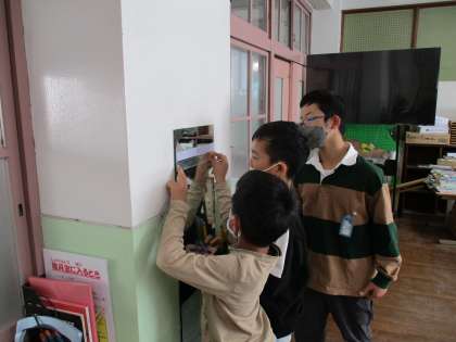 教室に隠されている四角形を探して、面積を測り、一番大きい四角形を見つける学習をしました。グループで協力して楽しみながら面積の学習をすることができました。