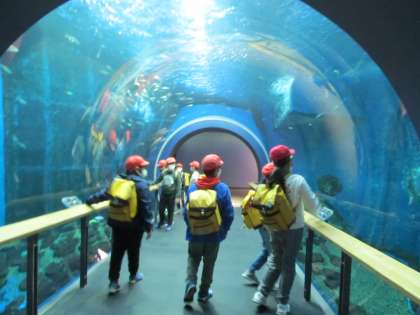 トンネル状の大型水槽や琵琶湖オオナマズ,チョウザメなど迫力のある展示に子どもたちは喜んでいました。