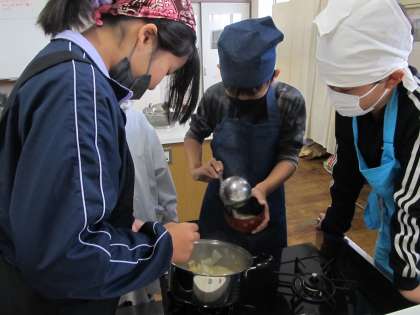 出汁入りと出汁なしでみそ汁を飲み比べて、出汁のうま味を感じました。