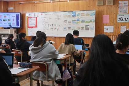外国語の学習で、自分たちのまちを紹介する準備を行いました。