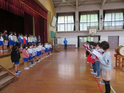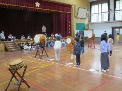 総合的な学習の時間で練習してきたちくさばやしを、2年生と大空学級のみんなに見てもらいました。最後に感想を聞くと、「3年生の太鼓の音が合っていてすごかった。」「ぼくたちもやってみたい。」と言ってくれました。