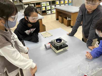 ろ過した後は、ろ液を蒸発する実験をしました。