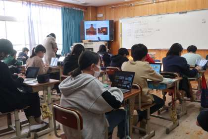 理科の「土地のつくりと変化」の学習で、土地の変化についてGIGA端末を活用し調べ学習を行いました。