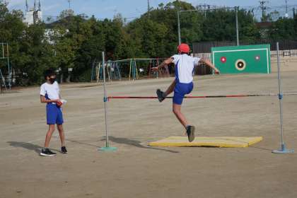 前の時間よりも、高く跳べるように工夫して取り組んでいます。