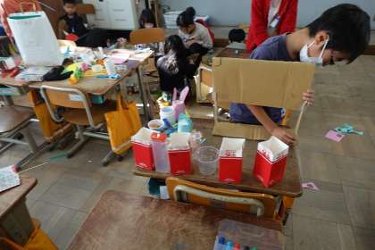 ガラクタを使っておもちゃを作っています。