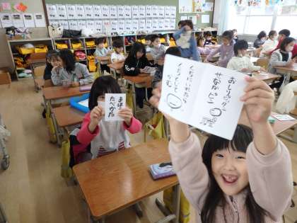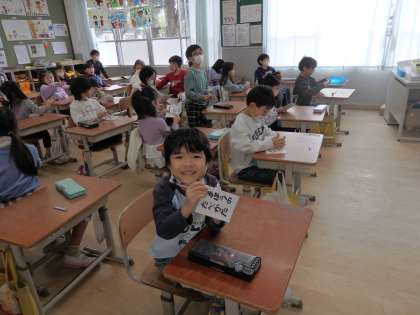 学活の授業で栄養教諭の竹原先生から、「魔法の食べ方」の授業をしていただきました。苦手な食べ物を楽しく、美味しく食べるためにおまじないを考えました。呼吸を整えて、姿勢を整えて、「やさいは美味しいアブラカタブラ〜☆」
