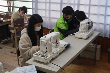 ミシンを使っでナップザックづくりに取り組んでいます。