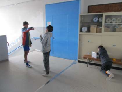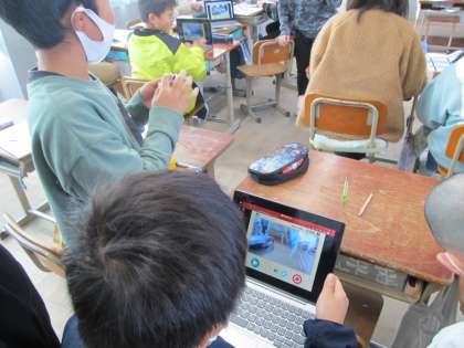 図工では、4つの題材でチームに分かれて形や絵が動く動画を作成しています。少しずつ人や物の位置をずらし、こま撮りして、それを続けて動かします。本当に鉛筆や紙で作った人が動いているように見えて、楽しみながら取り組むことができています。