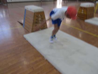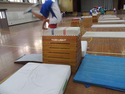 体育ではとび箱が始まりました。今日は1時間目だったので、自分のとべる段ととび方で取り組みました。