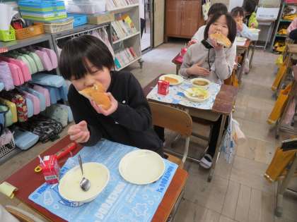パンにチキンとキャベツをはさんでほおばると……おいしい!