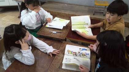 はるかぜ,竹,雪,お日さま,ナレーションにそれぞれ分かれて読みました。