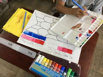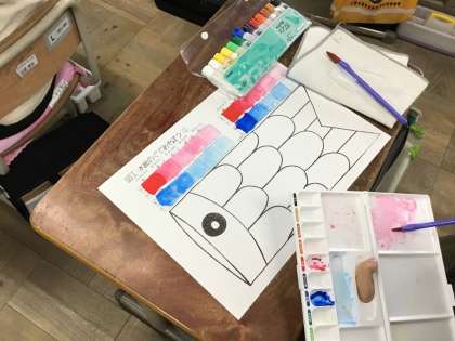 水で薄めたり、白と混ぜて色を作ったりしました。
