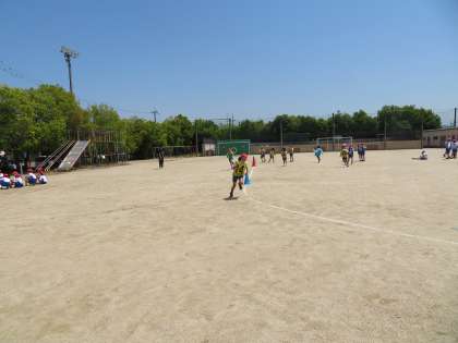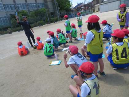 チームで協力して、バトンパスが上手くいくように練習をしています。