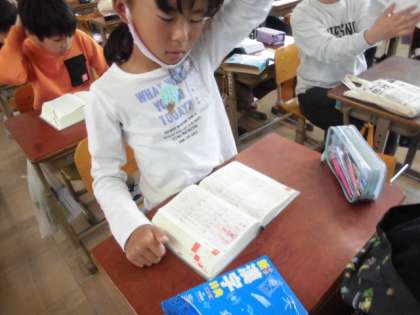 「部首索引」,「音訓索引」,「総画索引」のいずれかを使って,漢字をたくさん調べる練習をしました。