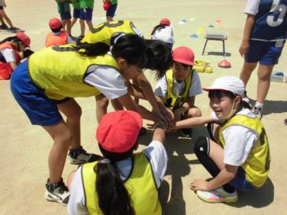 走る前には、作戦を考えたり、班でエンジンを組んで意気込む様子が見られました。