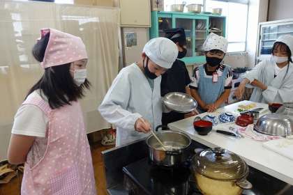 調理実習で、お味噌汁とご飯を作りました。