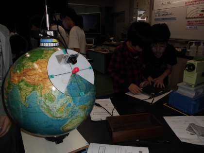 さらに、地球儀を傾けて光を当て、地軸の傾きと季節の関係について「なるほど!」と理解できたようです。