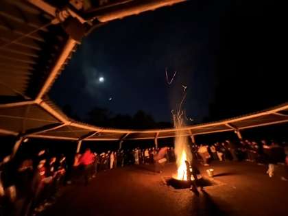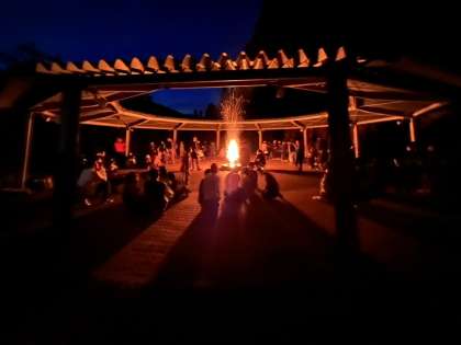 キャンプファイヤーは大盛り上がり!
